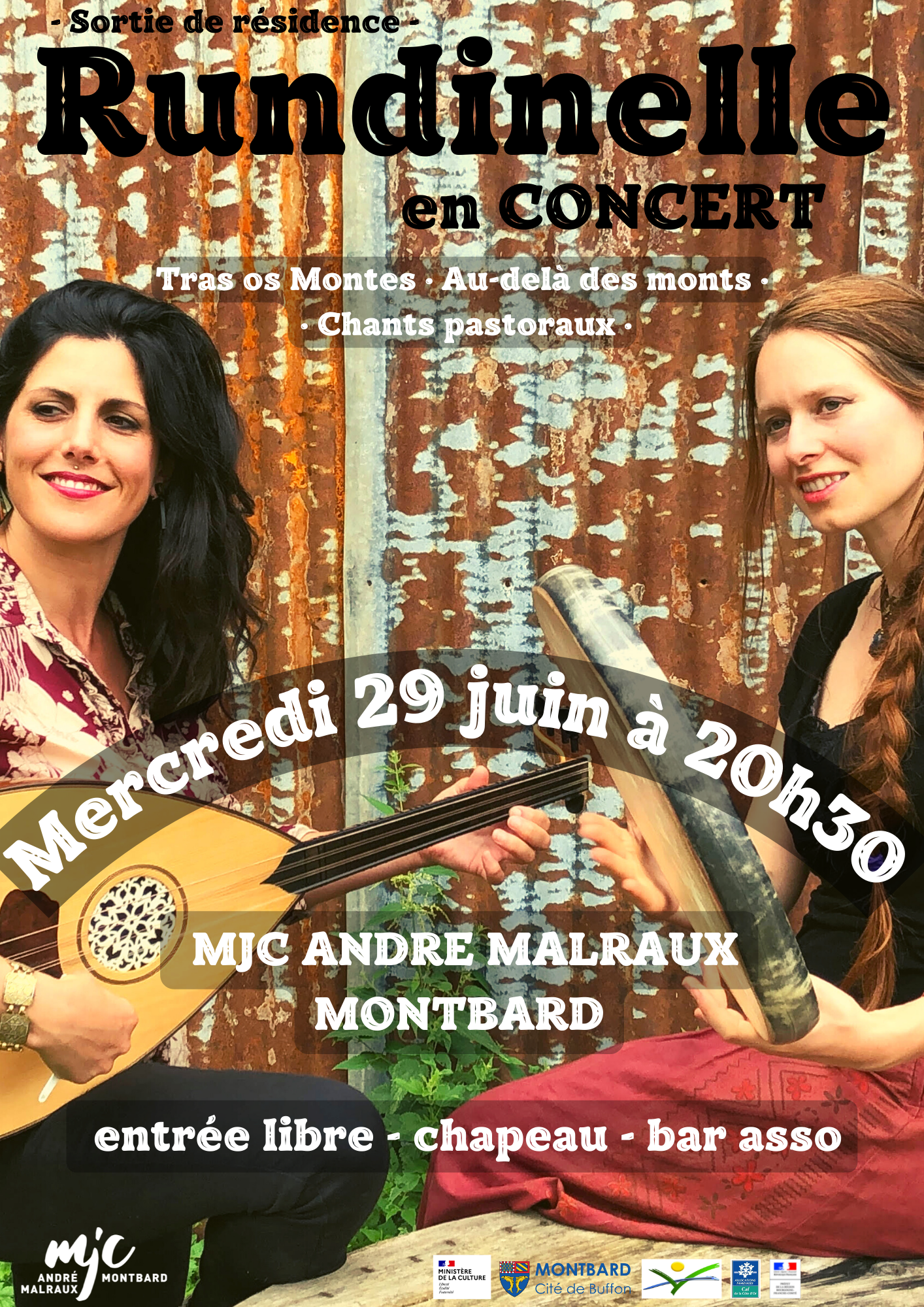 RDV Mercredi 29 juin à 20h30 dans le hall de la MJC pour le concert de sortie de résidence de Laetitia Marcangeli (chant, vielle à roue, percussion) de la compagnie Présences-Monde et Julie Lobato (chant, lavta et percussion).